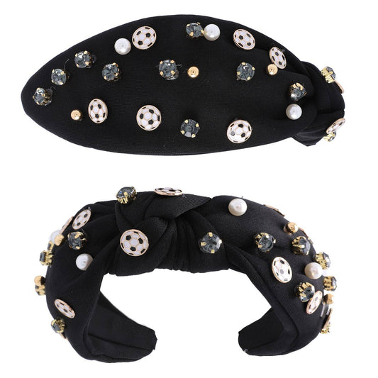 Jeweled & Pearl Beaded w/ Soccer Charms Knotted Headband