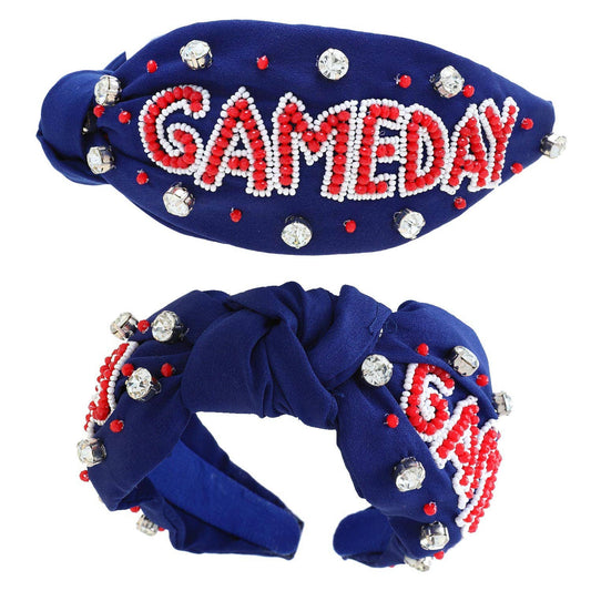 Rhinestone Jeweled Beaded "Gameday" Pattern Knotted Headband