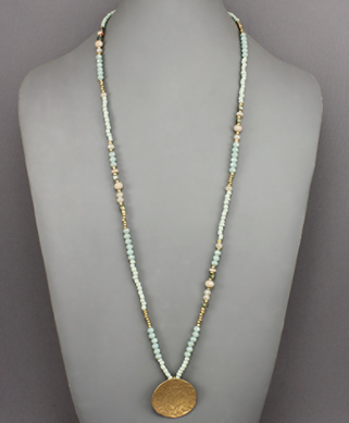 Alina Resin & Worn Gold Ball Bead Chain Link Necklace in Tortoise