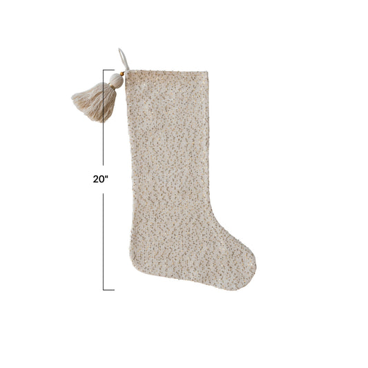 Woven Fabric Blend and Stocking w/ Sequins, Tassel & Wood Bead