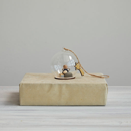 Glass Cloche w/ Wood Nativity Scene & Star Ornament