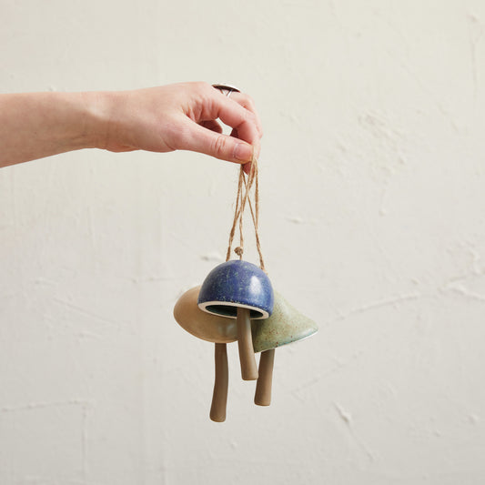 Stoneware Mushroom Bell Ornament w/ Jute Hanger, Multi Color Speckled