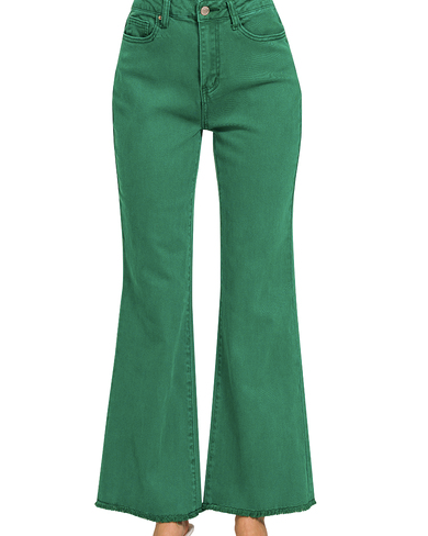 High Rise Cropped Bow Tie Back Wide Leg Cello Denim Pants