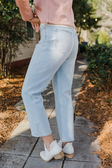 Light Wash High Rise Straight Crop Zen Denim Jeans
