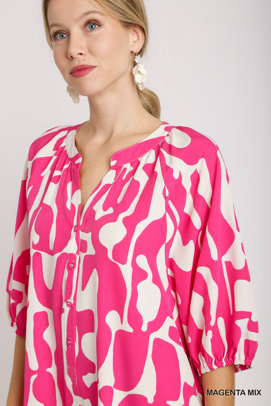 Nadine Abstract Midi Dress in Magenta