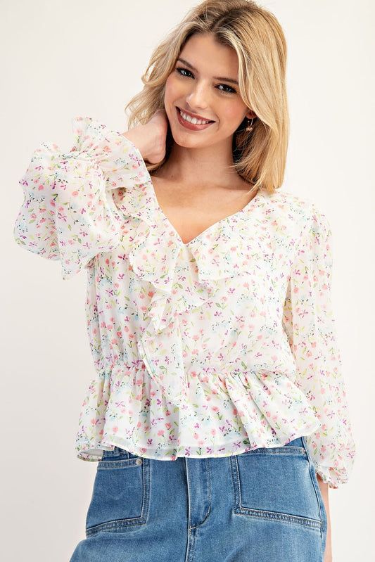 FINAL SALE Sara Leigh Floral Ruffle Top