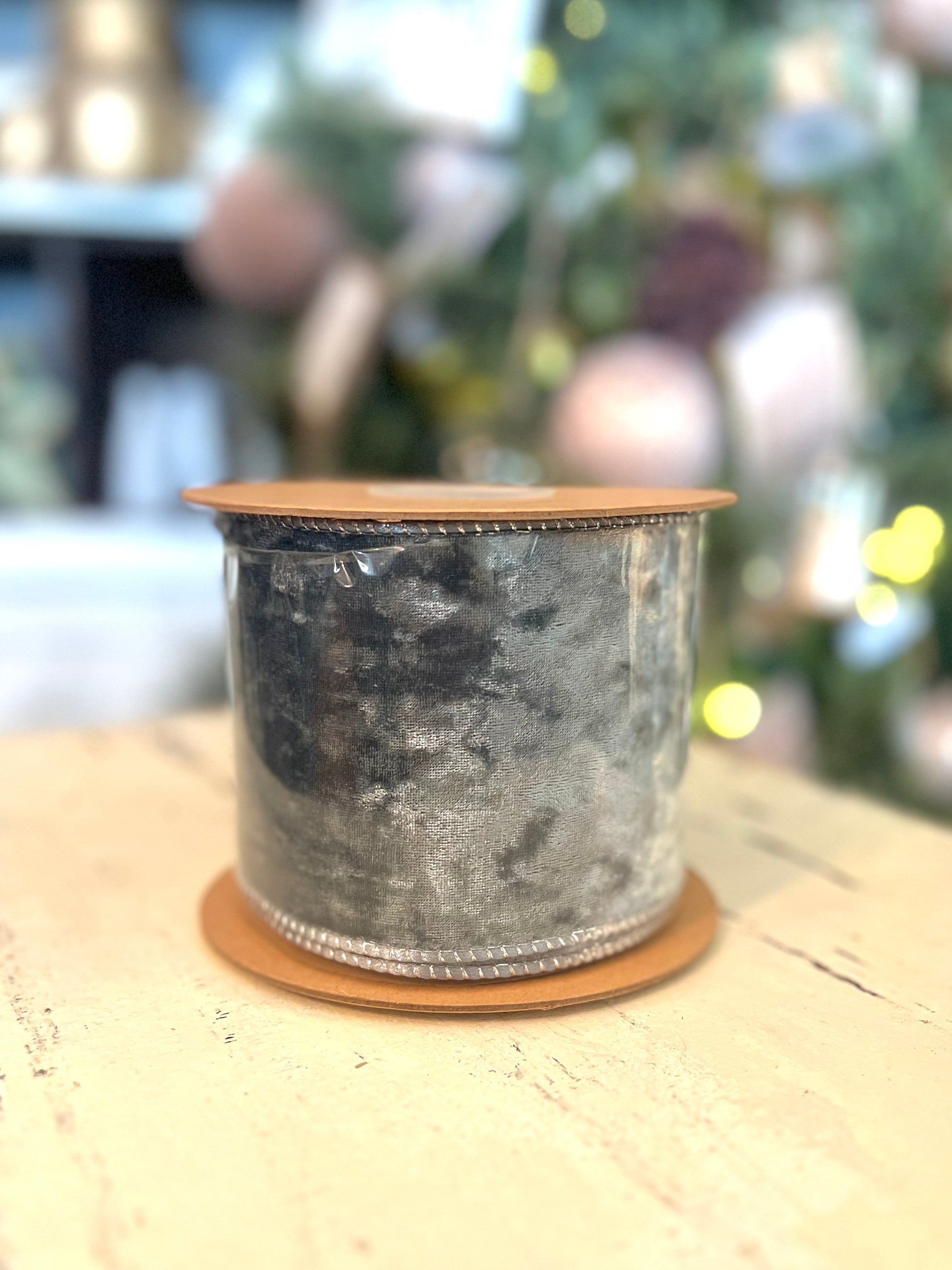 4" Reversible Frosted Blue Velvet Wired Ribbon 10 Yard Roll