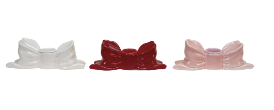 5"W x 2"H Stoneware Bow Shaped Taper Holder