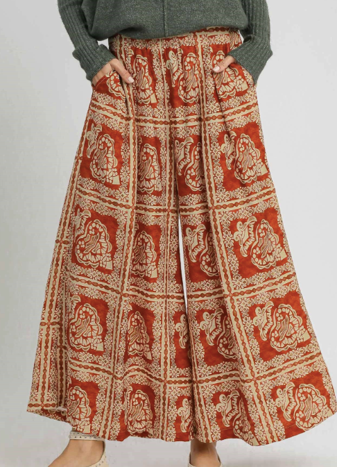 Bohemian Print Pants with Pockets
