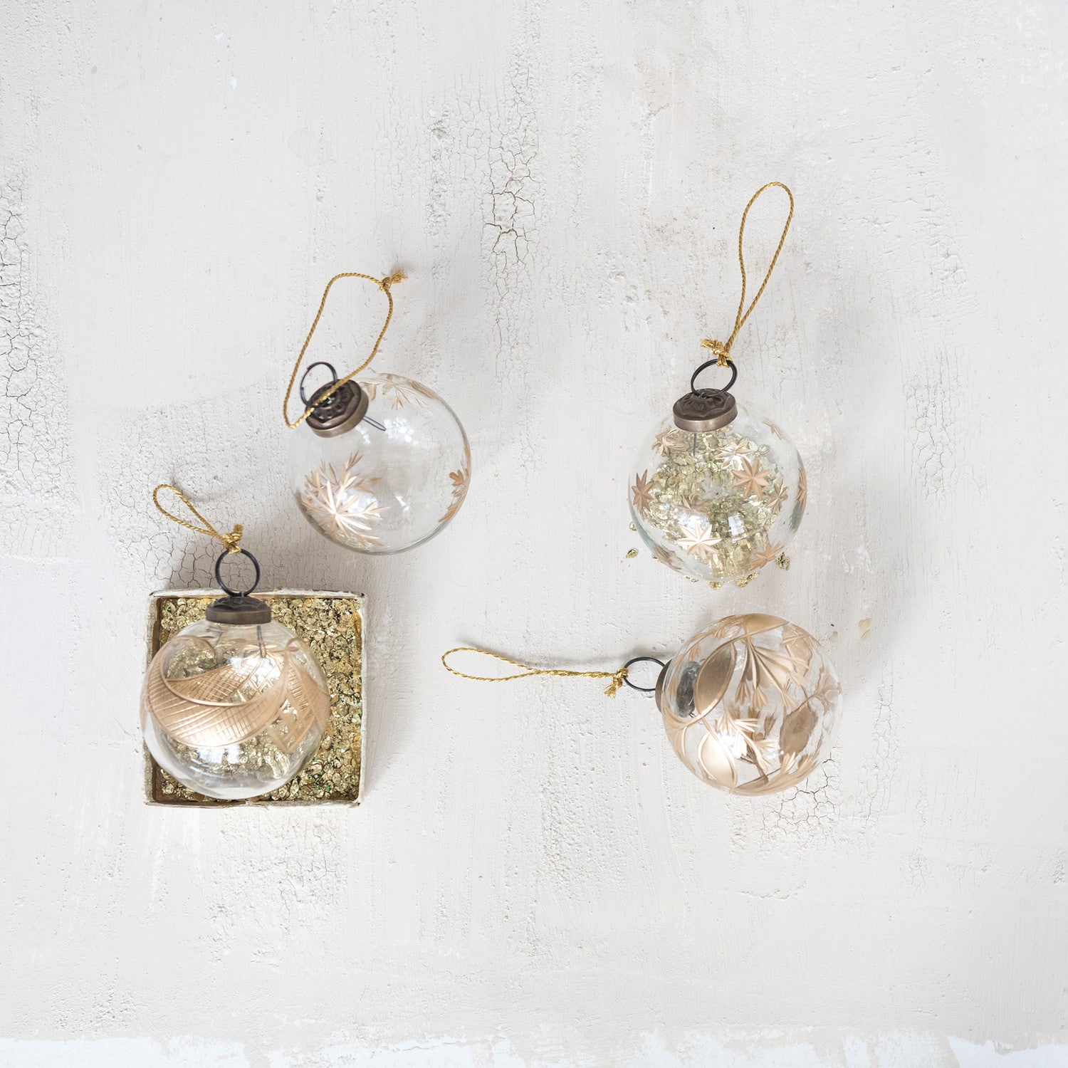 Hand-Painted Etched Glass Ball Ornament with Designs