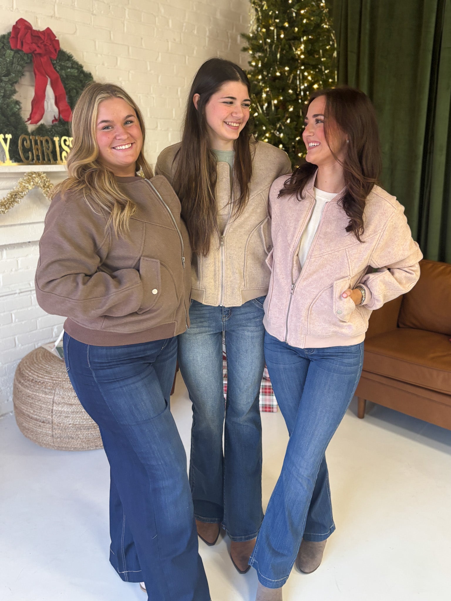 Elevate your everyday style with this striking bomber jacket that seamlessly blends contemporary design with timeless appeal. The long sleeves and mock neckline create a polished silhouette, while thoughtful details like decorative seams, banded cuffs, and a fitted hem add dimension and sophistication. Functional side flap pockets keep essentials within reach, and the smooth zipper front ensures effortless layering. Perfect for transitioning between seasons or dressing up casual outfits with an instant edge.